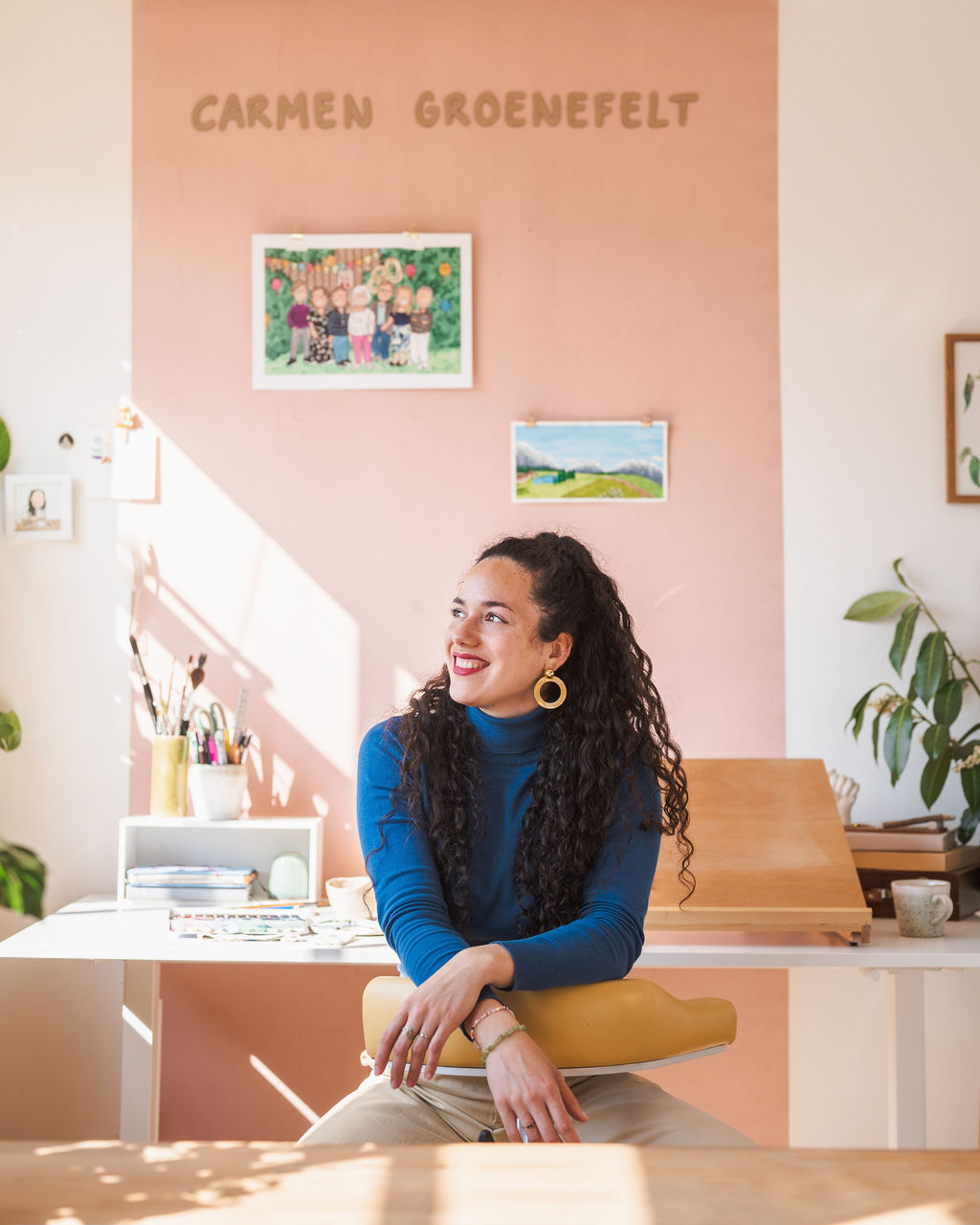 Ik ben altijd bezig met ondernemen. Juist het netwerken, met mensen samenwerken en mezelf ontwikkelen vind ik zo tof aan het ondernemer zijn. Dus naast het illustreren zit ik nooit stil. Letterlijk niet, want als ik te lang gezeten heb, ga ik dansen. En dat kan je dan weer zien in mijn storyvlogs op Instagram (@carmengroenefelt_art). ‘Je komt voor de illu’s en blijft voor de vibes’.