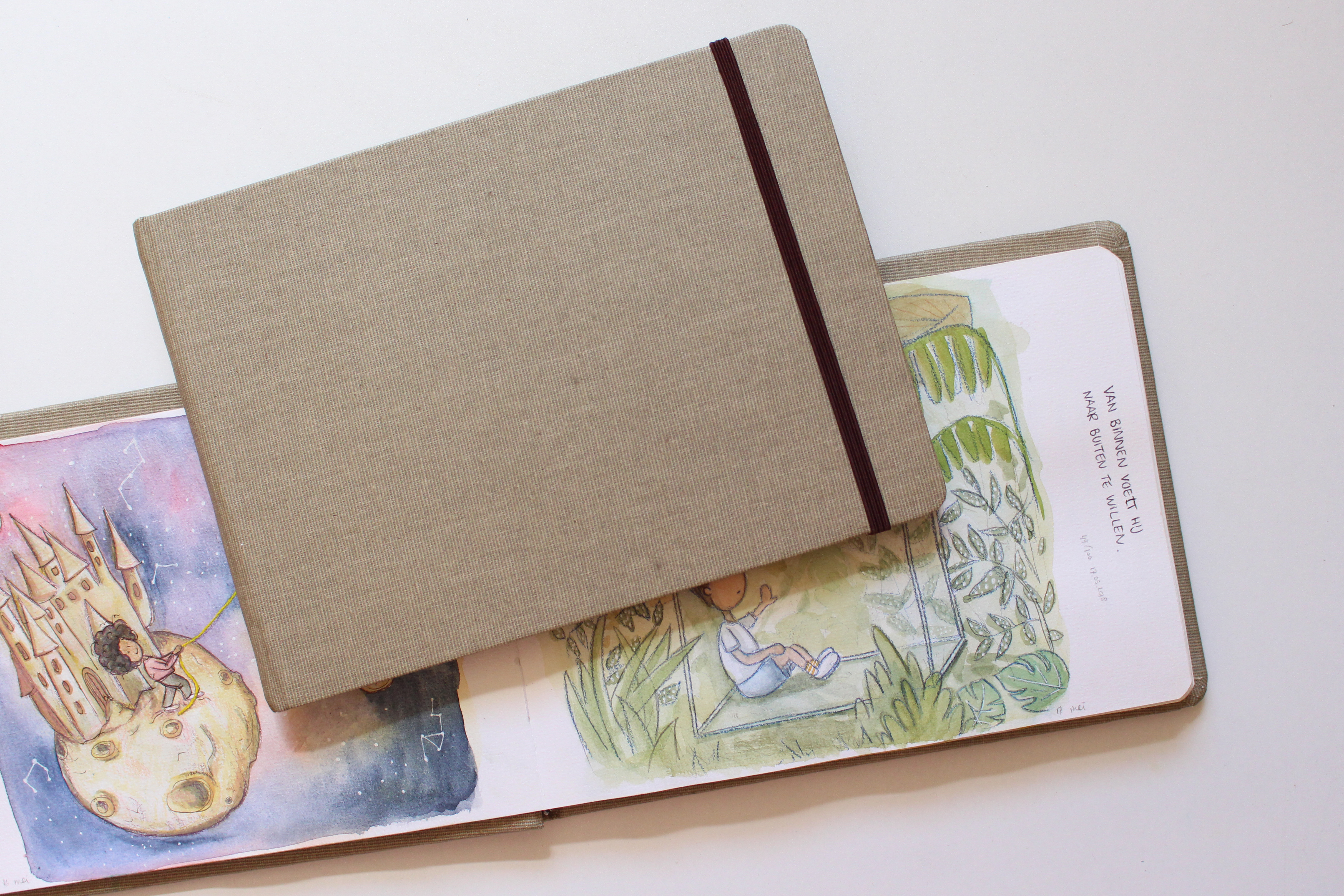 De illustraties voor Eén met de natuur komen tot stand in mijn schetsboekjes van Clairefontaine.