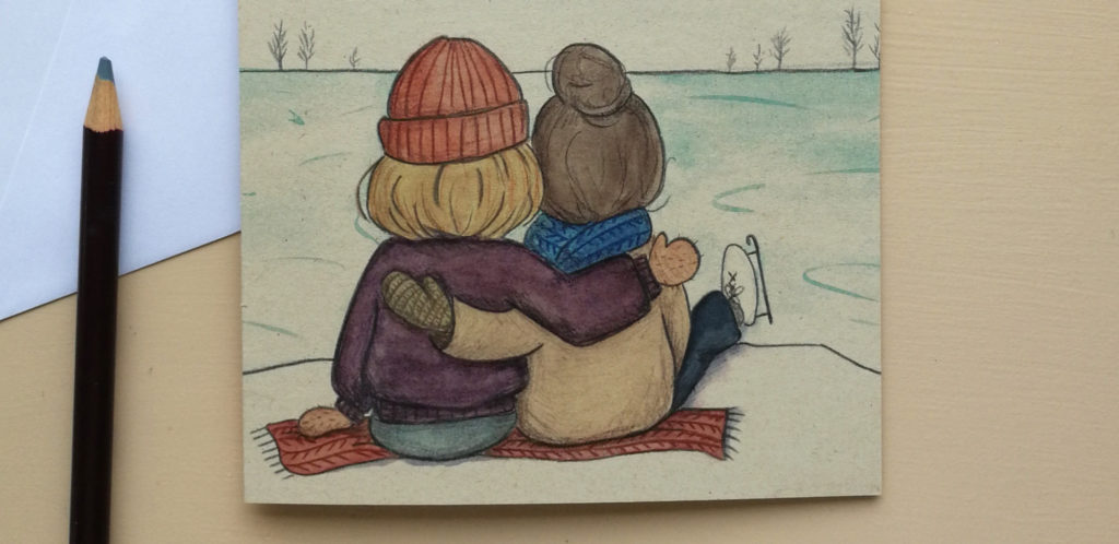 Hoe leuk? Ik liet dit jaar kerstkaarten drukken van twee tekeningen die ik maakte (live op Instagram waar jullie mee konden kijken) en binnen een week waren de 130 stuks uitverkocht.